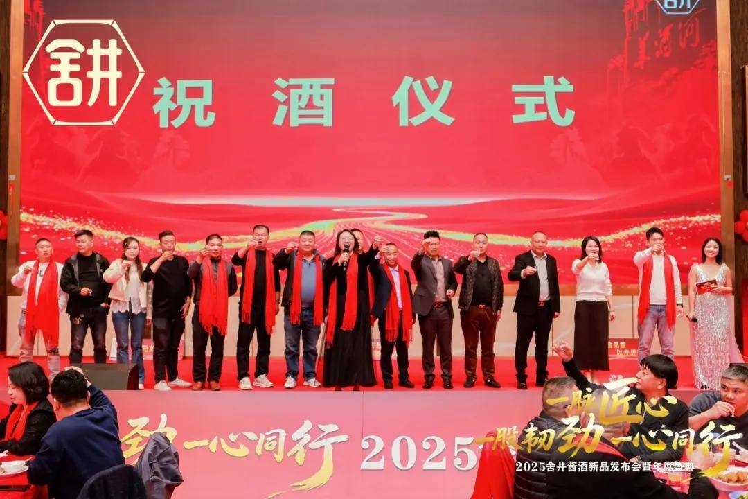 盛典在温馨隆重的“舍井家宴”中延续。舍井酱酒副总经理吕相美携股东代表登台祝酒,与全场家人共敬情谊、共期未来。