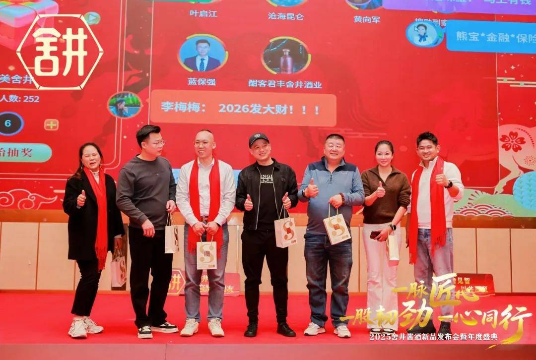 随后的三轮抽奖环节,更将晚宴氛围推向高潮。舍井酱酒股东王海健、张红、雷学军为现场家人抽取奖品,“醉美舍井”、“舍井美”等佳礼接连送出,终极大奖——由惠阳名邦家居倾情赞助的“发财床垫”,更为幸运家人送上了一份厚重的新年祝福。